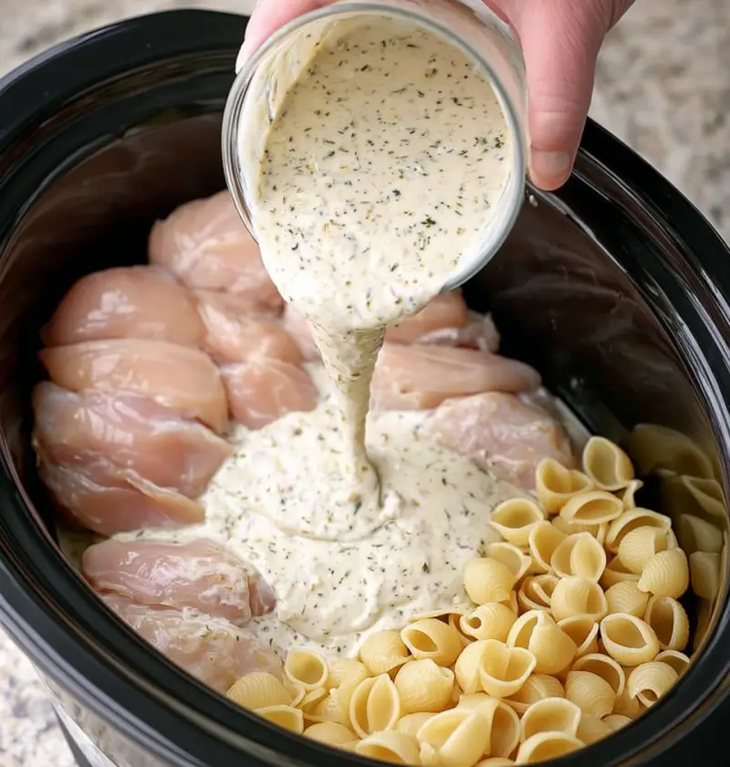 My friend Linda brought something like this to a potluck maybe three or four years ago — one of those neighborhood things where everybody’s supposed to bring a dish and half the people show up with a bag of chips and call it a day. Linda showed up with a slow cooker still plugged into an extension cord she’d run from her kitchen, which is exactly the kind of person Linda is, and she set the whole thing on the folding table and said, “It’s just pasta and cream and garlic, don’t overthink it.” I had two helpings. I asked …