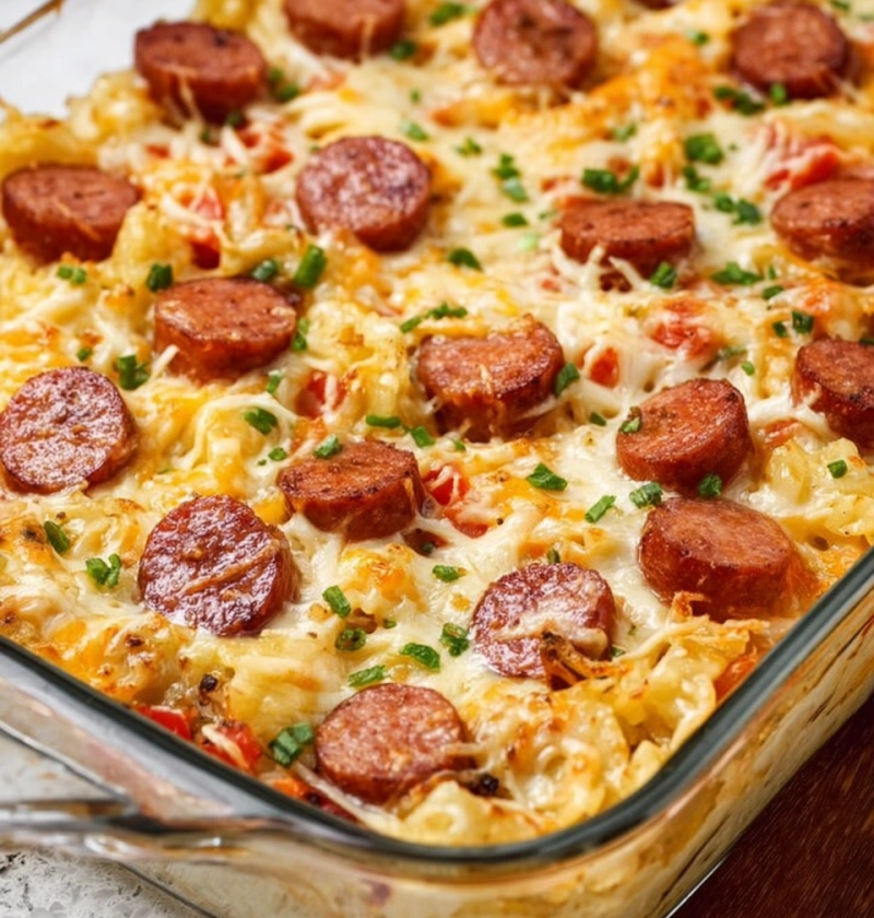 4-Ingredient Cheesy Kielbasa Bake