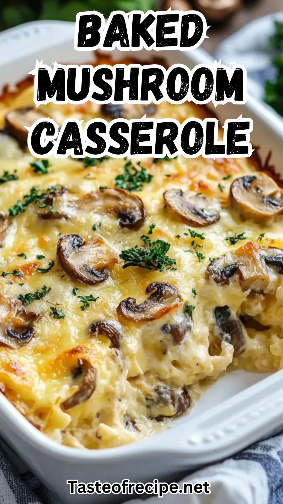 Enjoy this Baked Cheesy Mushroom Casserole for a cozy and earthy meal that can be enjoyed on any occasion.