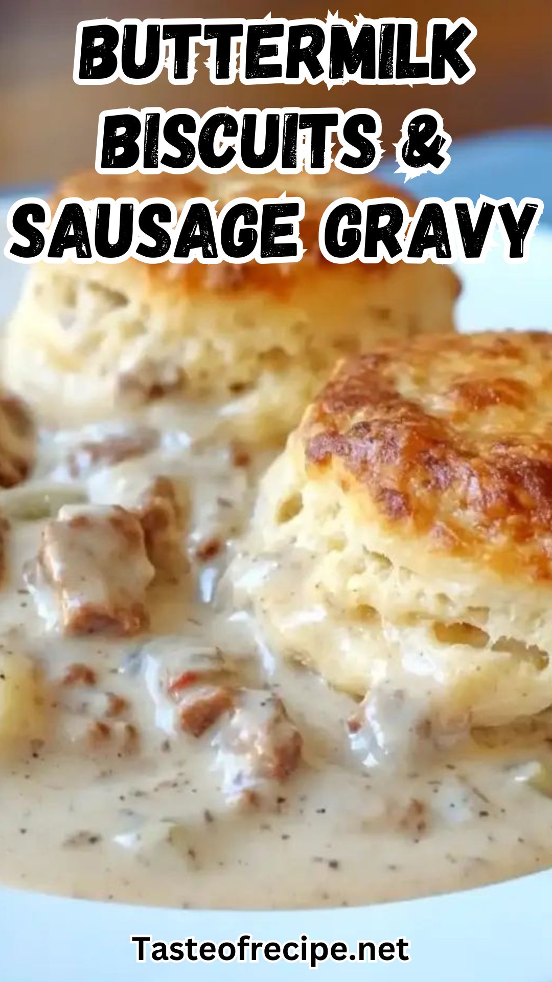 - Split warm biscuits in half and place on plates. Ladle hot sausage gravy generously over the biscuit halves. Serve immediately while warm.