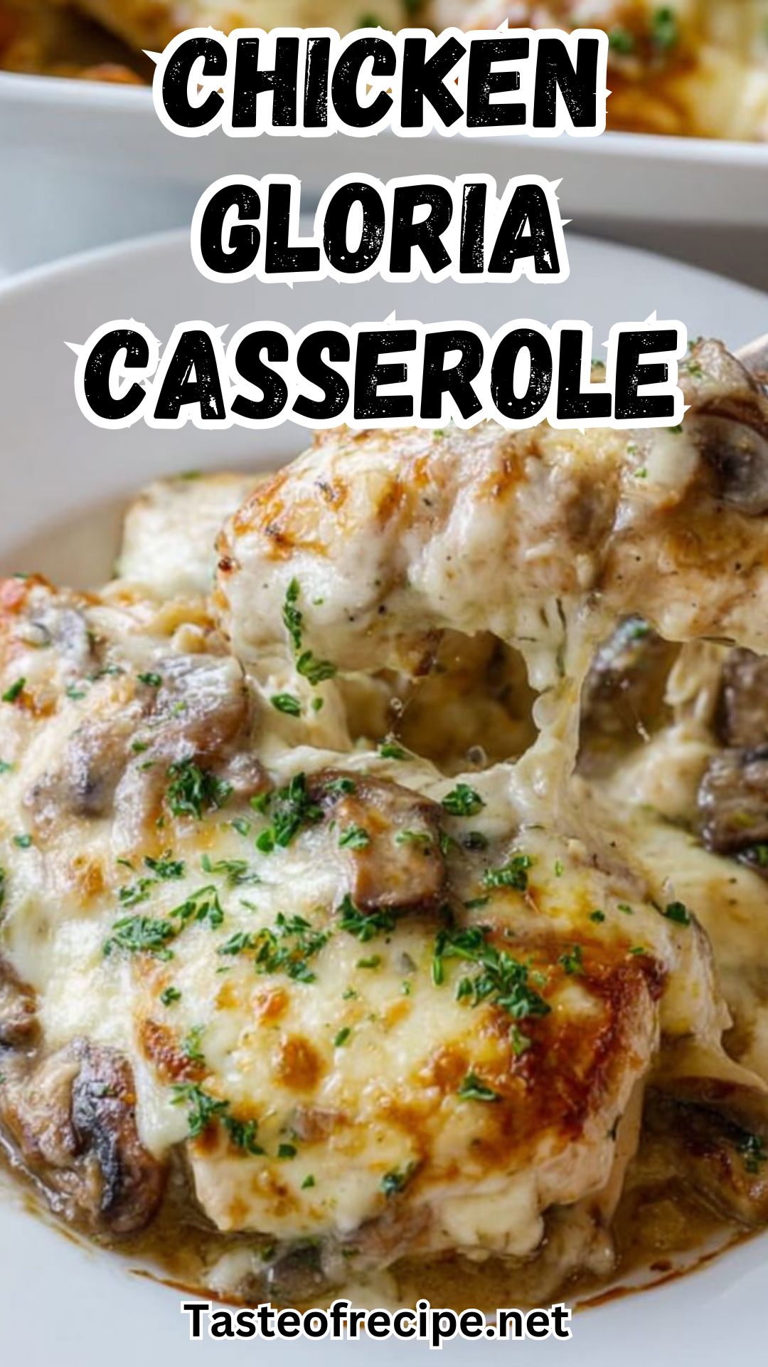 Then — and this is the moment where it turns into Chicken Gloria — lay a slice of Swiss or Muenster cheese on top of each chicken piece. It doesn’t need to be perfect. This is a casserole, not a magazine shoot.