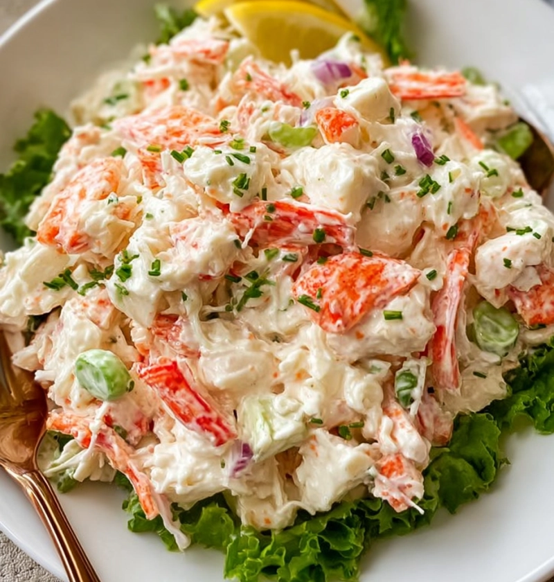 I’ve been making this creamy crab salad for years now, and it never lasts long. It’s got just the right mix of crunch, creaminess, and that sweet little zing from the lemon and mustard. Every bite tastes like summer — even if you’re eating it out of a Tupperware container at your desk in January.