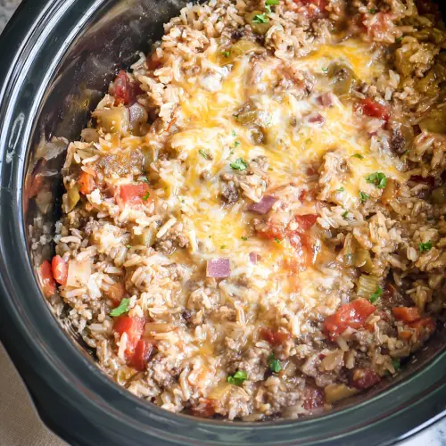 • Cover and cook on low for 6–7 hours or on high for 4 hours, until vegetables and rice are tender.
