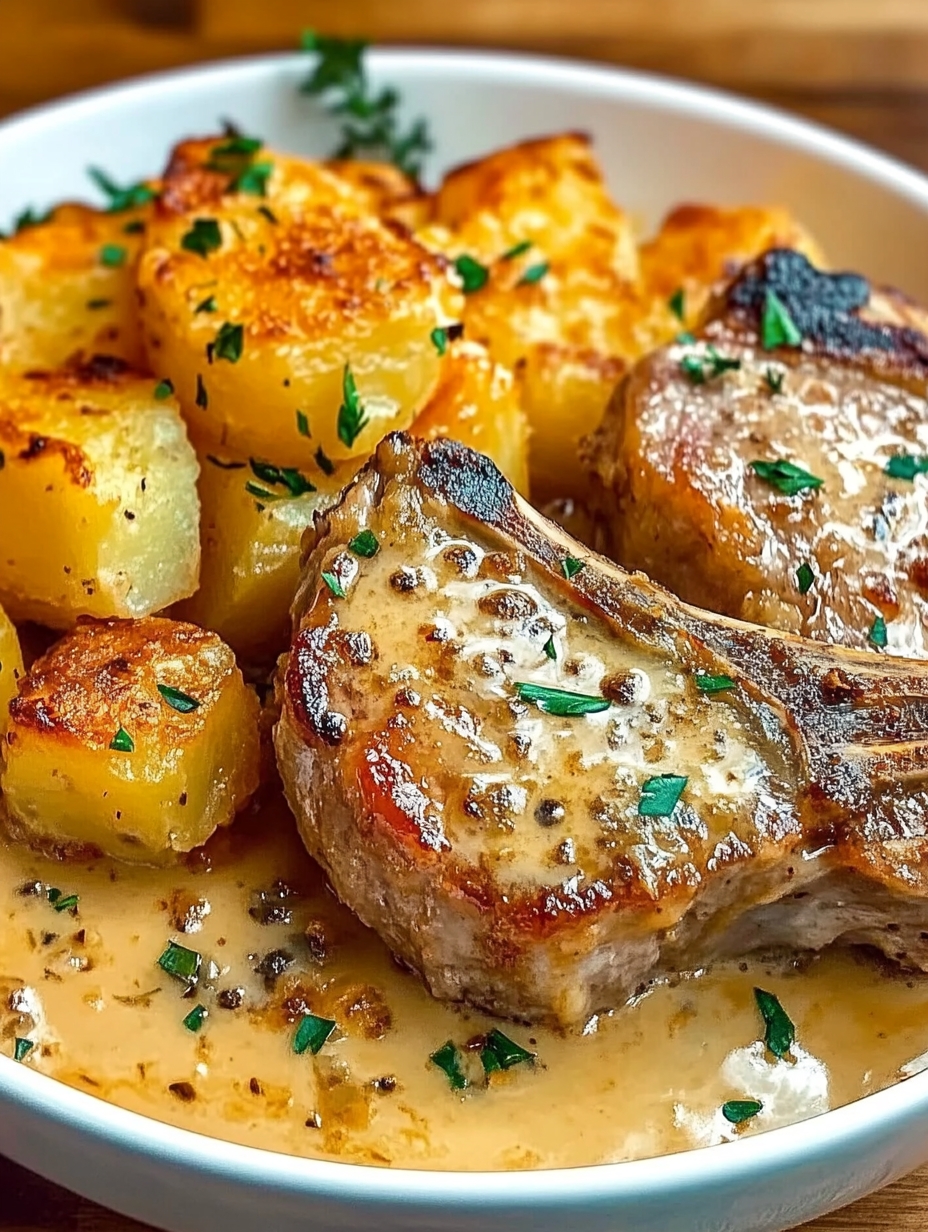 Picture this: thick pork chops, seared off till they’ve got that beautiful crust, then smothered in melted butter and garlic so good it’ll make you weak in the knees. And sitting right next to them? A cheesy, creamy potato bake that’s bubbling away with little crispy edges you’re gonna want to steal straight outta the pan when nobody’s looking.