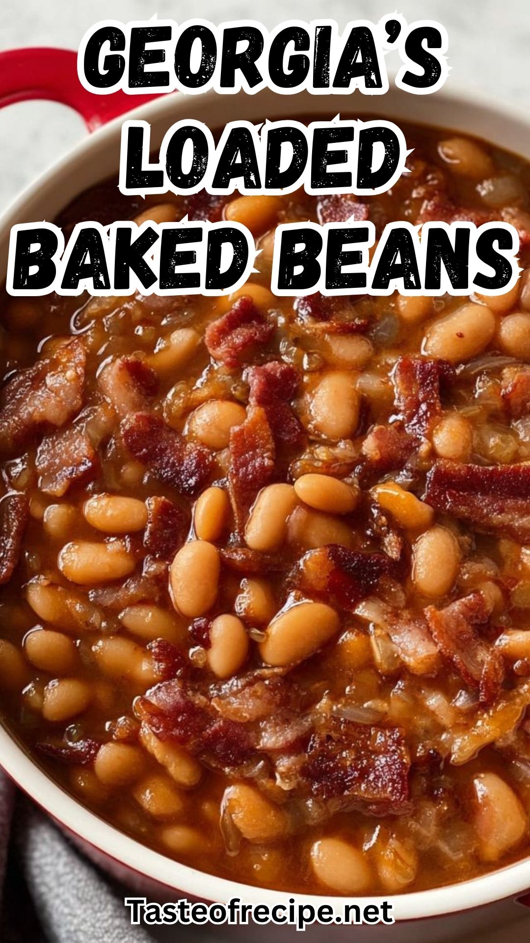 My Aunt Georgia’s version is the one I grew up with. It’s the kind of recipe you don’t really need to write down after you’ve made it once, because the smell of bacon and onions frying will tell you exactly what comes next. It’s sweet from the brown sugar, tangy from the mustard, a little smoky from the paprika… and the sauce? Oh, the sauce clings to every single bean like it knows it’s part of something special.