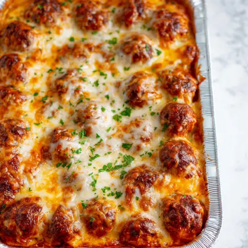 That’s when this beauty of a dish swooped in and saved my night. I threw together some frozen meatballs, slathered ‘em in marinara, made a gooey cheese sauce, and layered it all on top of crispy Texas toast. Baked it up, and bam — it tasted like a meatball sub had a cozy night in and wore its stretchy pants.