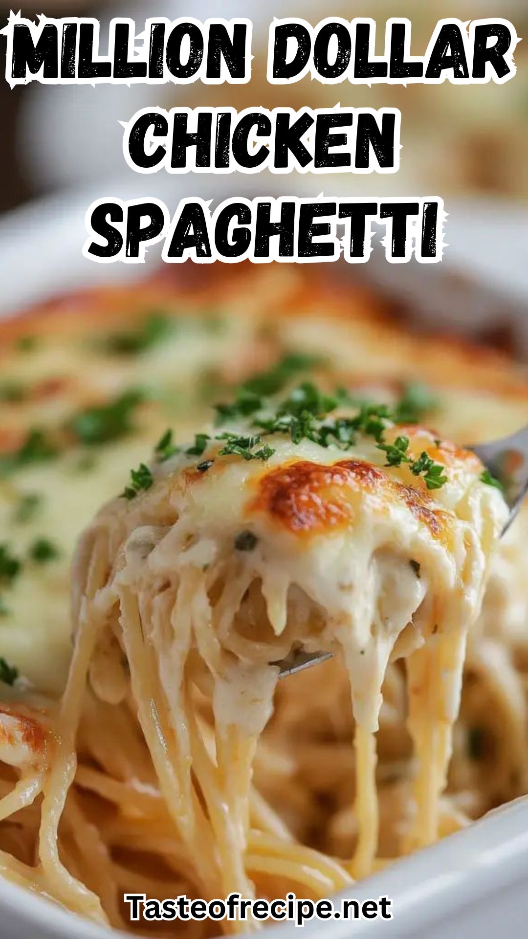 This Million Dollar Chicken Spaghetti? Oh, it’s the one I reach for when I want that full-on cozy feeling—the kind that makes people grab seconds and demand the recipe before they’ve even finished their plate. It’s rich, creamy, and just a little bit over-the-top (but not in a fussy way). Seriously, that first bite—the way creamy sauce hugs those tender noodles, gooey cheese makes those perfect cheese pulls, and the top gets gorgeously golden and bubbling? Pure magic. This is comfort food at its finest—everybody’s suddenly “helping in the kitchen,” especially once they catch a whiff.