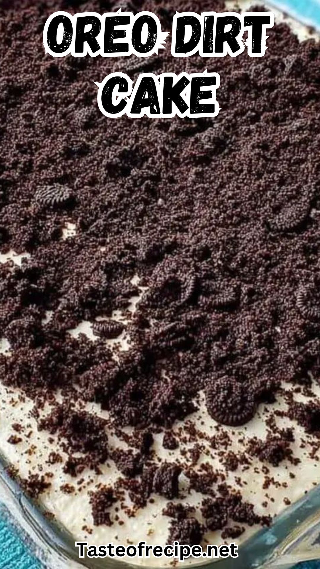 Grab your favorite 9×13 pan. Sprinkle half the Oreo crumbs on the bottom. Pour or spoon the creamy filling over the “dirt” and smooth it into an even, thick layer. Sprinkle the remaining Oreo crumbs on top—don’t forget that reserved cup for that perfect dirt-look finish!