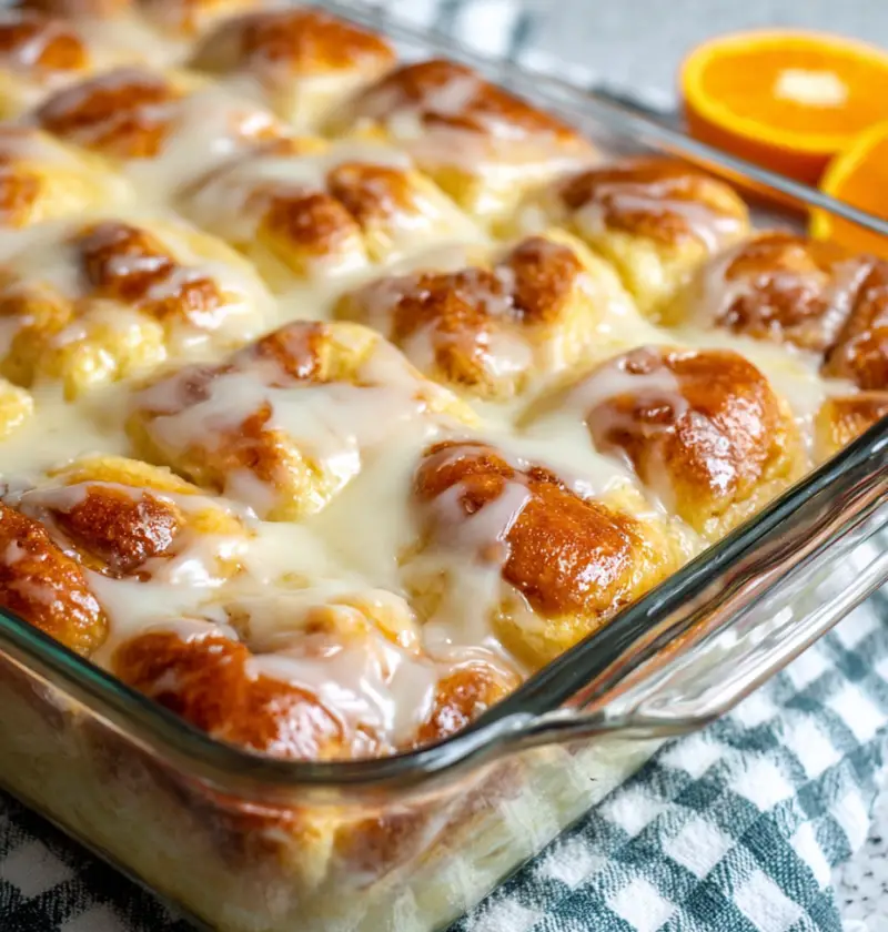 Never have been. I can make coffee with one eye open and pour cereal, but anything beyond that? It’s a gamble. So when I tell you this overnight orange roll casserole is my go-to for holiday mornings, sleepy weekends, or when we’ve got family staying over — I mean it.