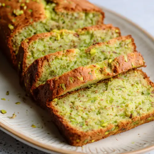 This is one of those recipes I almost didn’t try because I thought it looked too… green. I know. That sounds silly now. But years ago, someone brought pistachio bread to a bake sale at the school — wrapped in plastic wrap, tied with a bit of yarn, looking festive as all get-out — and I smiled politely but didn’t buy it. Then someone else bought it, sliced it, and passed me a bite.