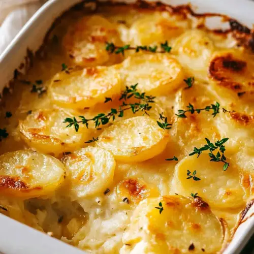 Cheesy-Dreamy: Swap in smoked Gouda, Gruyère, or even parmesan for deeper flavor. Herby: Layer in fresh thyme, rosemary, or even a little tarragon for a springy note. Bacon Lover’s: Scatter cooked, crumbled bacon between your potato layers, because let’s be real—bacon makes everything better. Garlic Fiend: Sauté a bit of minced garlic in the butter right at the start for an extra savory boost. Extra Decadent: Replace half the milk with heavy cream if you’re feeling fancy or need extra comfort points. Vegan-Friendly: Go for plant-based butter, milk, and shredded vegan cheese. Don’t knock it till you try—it’s surprisingly rich (even meat-eaters go back for seconds!).