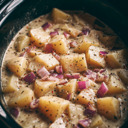 - Cover and cook on low for 6–7 hours, or until potatoes are tender.