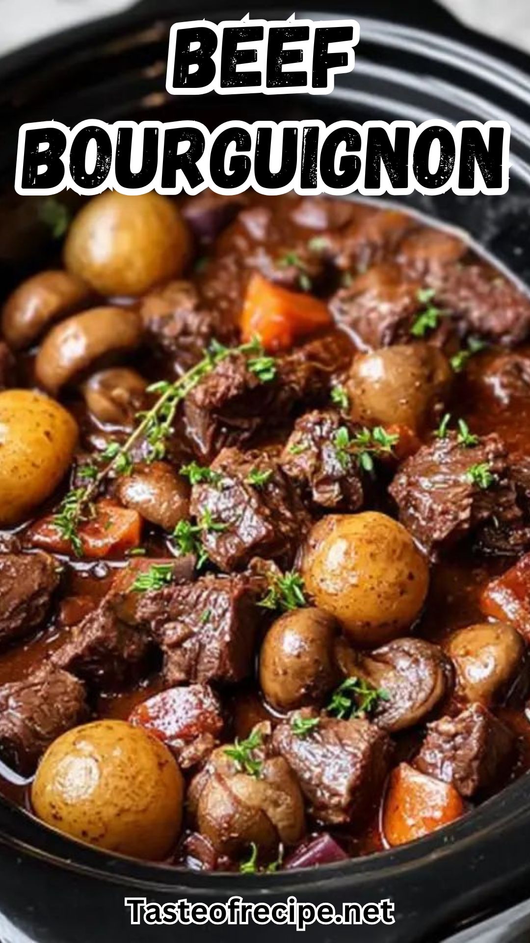 Let me tell you something — if you’ve ever wanted to make one of those fancy-sounding French dishes but felt too intimidated, this one’s for you. Beef Bourguignon (or as we lovingly say around here, boar-gone-yawn), might sound like something Julia Child would make with a dozen steps and two bottles of wine, but this slow cooker version? It’s pure comfort food — simple, slow-cooked, and absolutely soul-warming.