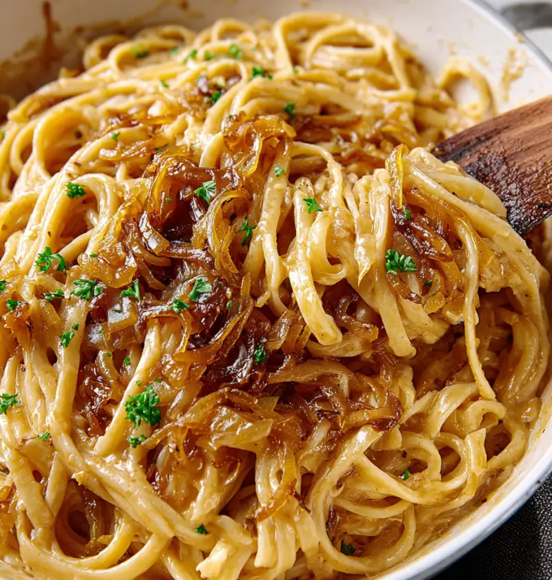 - Combine the caramelized onions with the cooked pasta, adding reserved pasta water as needed to create a silky sauce.