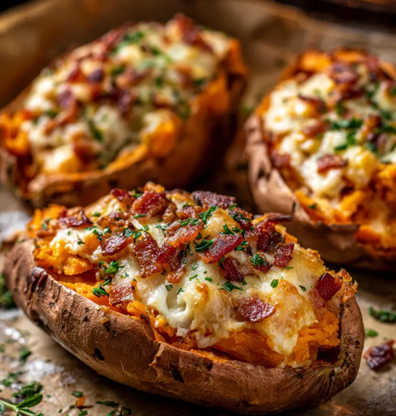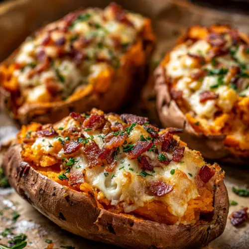 Slow Cooker Cheesy Bacon Stuffed Sweet Potatoes