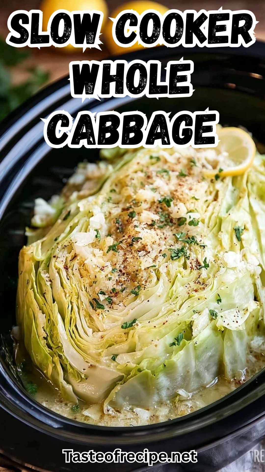 Slow Cooker Garlic Parmesan Whole Cabbage with Lemon Butter