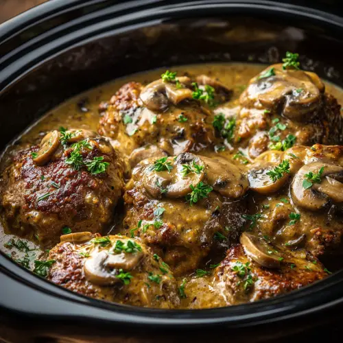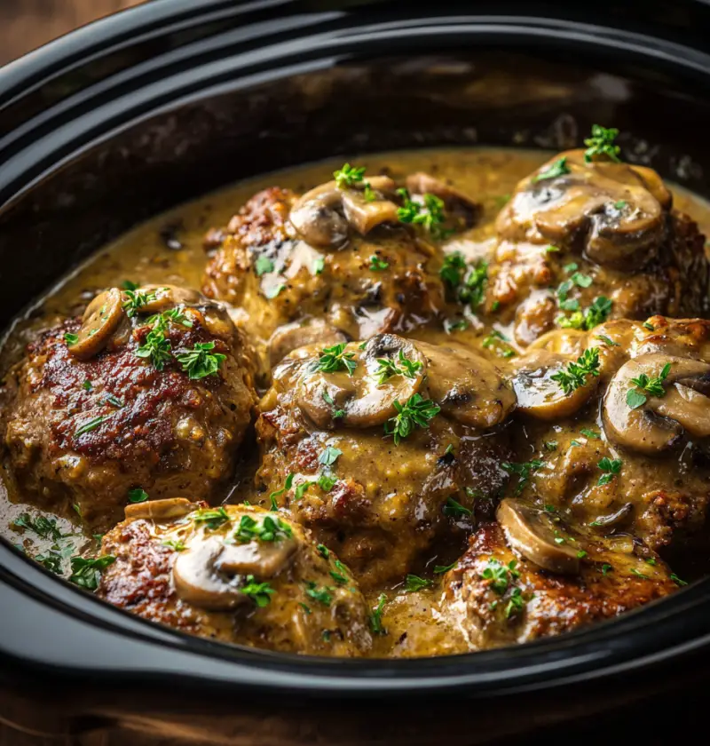 Slow Cooker Herb-Infused Salisbury Steak with Mushroom Gravy