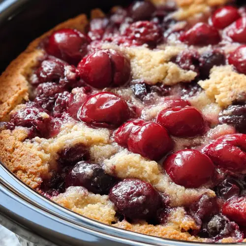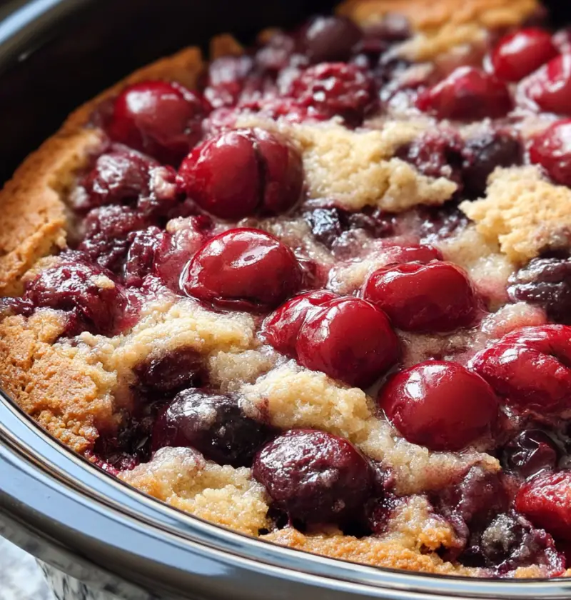 - Pour the cherry pie filling into the slow cooker and spread it evenly to form the base.