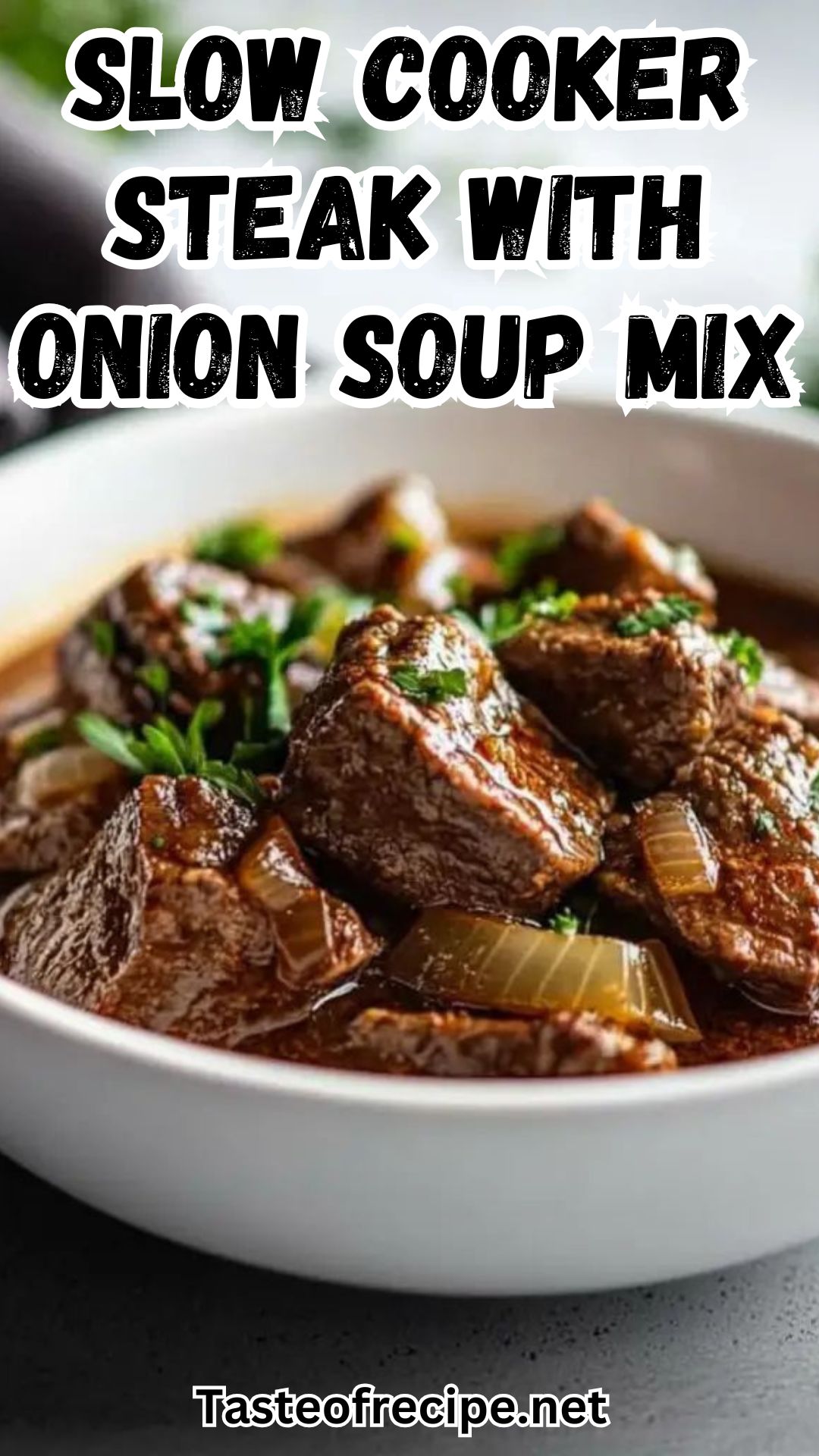 A simple but exceptionally delicious way to prepare steak is to use a slow cooker, and just use onion soup mix! This recipe needs little preparation and just a few simple ingredients; the result-fork-tender, juicy steak-which is bursting with savory flavor. The hard work gets done for you, as the slow cooker takes care of that, which makes the meal a perfect choice for hurried weekdays or when you have a desire for something warm and comforting. Only two staple ingredients—steak and onion soup mix, is all you require to successfully create this good dish of all time!