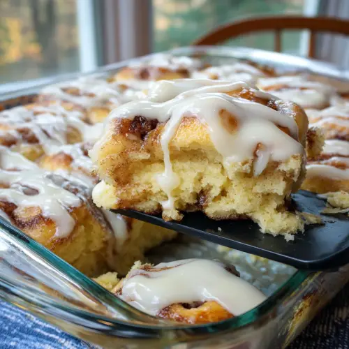 - Drizzle icing over the casserole, serve warm, and enjoy.
