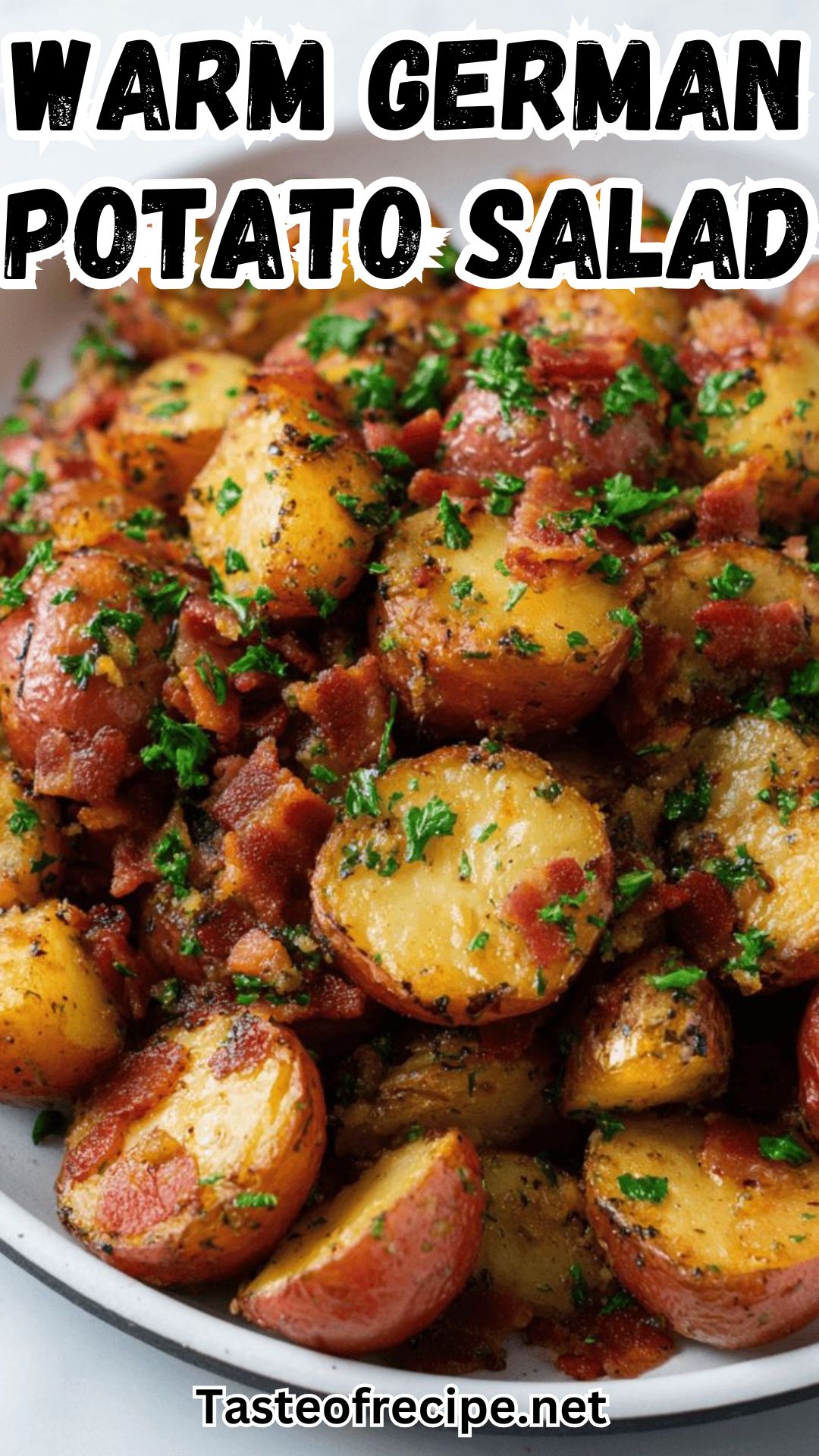 I don’t know what it is about this dish, but it always brings me back to the screen door slamming behind me and the smell of bacon drifting out of the kitchen before I even hit the porch steps. My mom only made warm German potato salad a few times a year — always when we had family visiting, always in her biggest enamel pan, and always always with a wooden spoon (never metal, she swore it made the potatoes taste tinny).