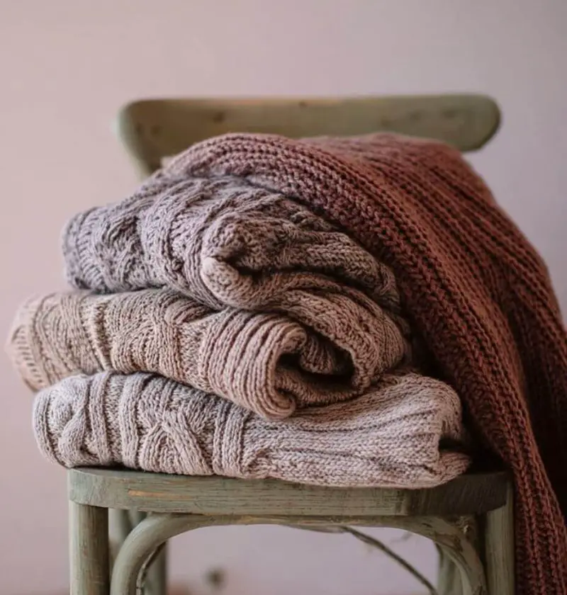 Quick tip: Wool and chunky knits work best because they hold shape and add beautiful texture. But don’t rule out lightweight sweaters either — they drape so nicely and can give a soft, romantic touch.
