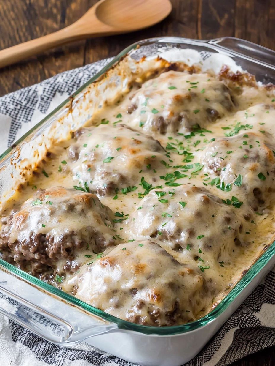 Keyword Amish recipes, baked steak, comfort food, creamy mushroom gravy, hamburger steak