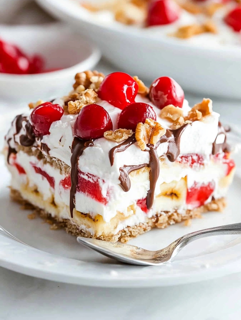 This no-bake banana split cake is a layered dessert that brings all the classic flavors of a banana split into a convenient, sliceable treat. With a buttery graham cracker crust, creamy cheesecake layer, fresh bananas, crushed pineapple, strawberries, and whipped topping, it's perfect for summer gatherings or anytime you want a chilled, fruity dessert without turning on the oven.