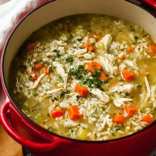 Add cooked chicken and uncooked rice. Bring to boil, reduce heat, cover, and simmer 15–20 minutes.