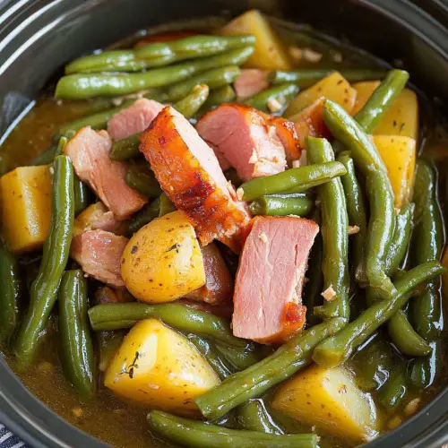 A hearty and comforting dish perfect for busy weeknights or family dinners. Slow-cooked ham, tender green beans, and perfectly cooked potatoes come together in a flavorful broth for a satisfying one-pot meal.
