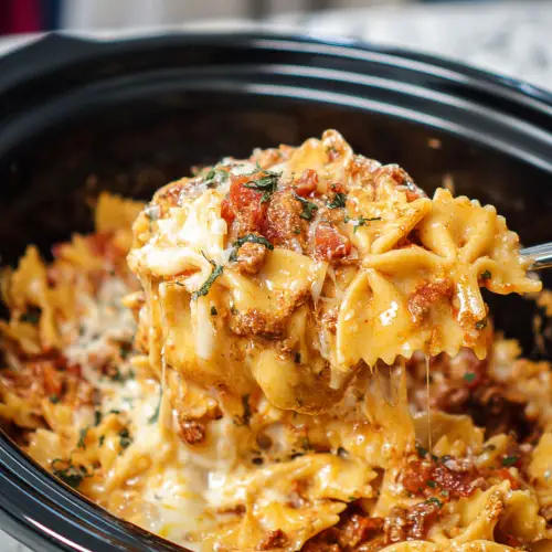 Once pasta is fully cooked, sprinkle shredded mozzarella cheese evenly over the top. Cover and cook for an additional 20 minutes or until cheese is melted.